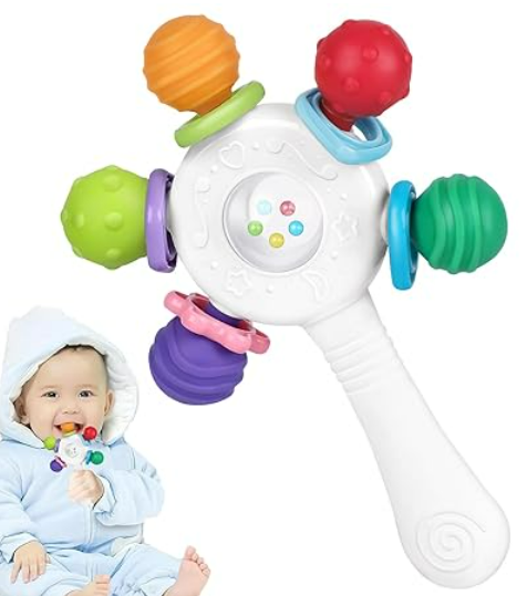 - Ergonomisches Design für einfaches Greifen: Entworfen, um der Greifkurve des Babys zu entsprechen, ist es rutschfest und leicht zu halten, was hilft, die Greifstärke Ihres Babys zu verbessern. Die Kanten sind glatt und ohne Borsten, um die Hände Ihres Babys zu schützen.